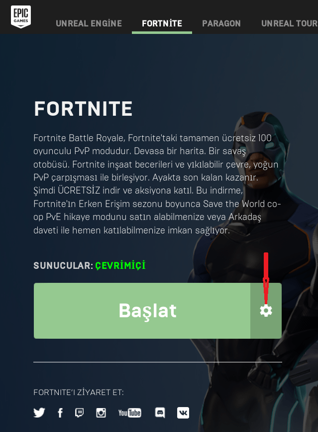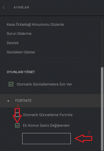 Epic Games Launcher’ı çalıştırın ve ok ile gösterdiğim ayarlar simgesine tıklayın. Ardından ayarlar yazan sekmeye tıklayın.